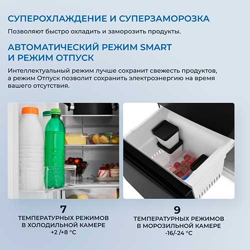 Режим Smart (Интеллектуальный) - автоматический режим для наилучшего сохранения свежести продуктов и экономного расхода электроэнергии
