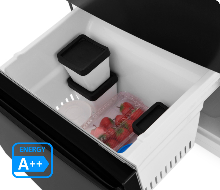 2 вместительных выдвижных ящика - подходят для хранения большого объема продуктов, а также крупных цельных кусков (тушки рыбы, птицы, дичь и пр.)
