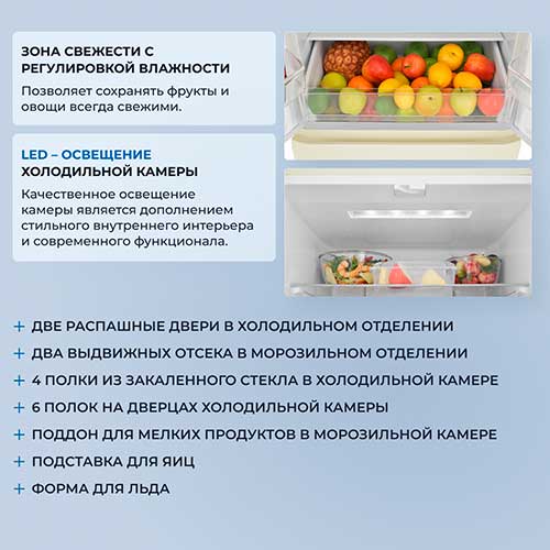 2 вместительных выдвижных ящика - подходят для хранения большого объема продуктов, а также крупных цельных кусков (тушки рыбы, птицы, дичь и пр.)