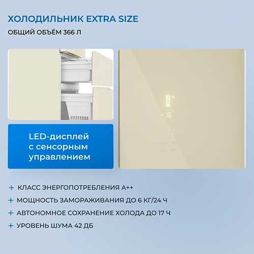 Электронное управление осуществляет контроль температуры отдельно в холодильной и морозильной камерах
