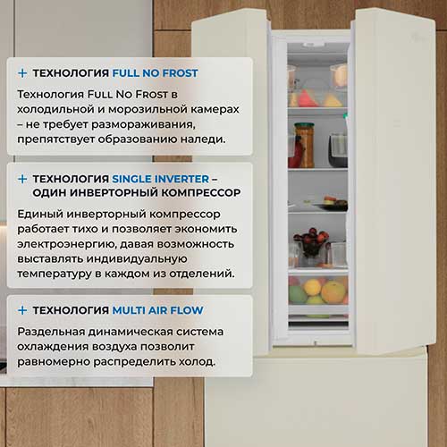 Система охлаждения Multi air flow - система раздельного динамического охлаждения воздуха в холодильной и морозильной камерах для эффективной работы холодильника