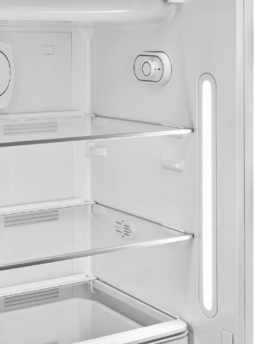 Холодильник в культовом цветном дизайне в стиле 50-х годов с внутренней морозильной камерой идеально подходит для придания индивидуальности кухне или гостиной, не жертвуя при этом эффективностью охлаждения и удобством практичного и функционального интерьера.