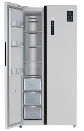 Стильное текстурное покрытие с мерцанием сделает холодильник Tesler RSD-537BI SPARKLING WHITE ярким элементом дизайна вашей кухни.