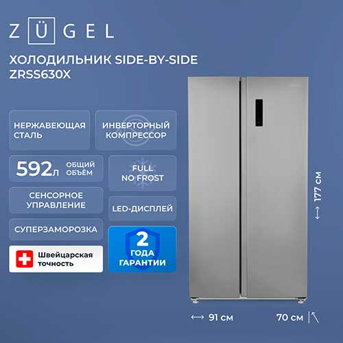 Холодильник Side-by-Side Zugel ZRSS630X, нержавеющая сталь, отзывы (4) | Добавить отзыв | ||||||||||||||||||||||||||||||||||||||||||||||||