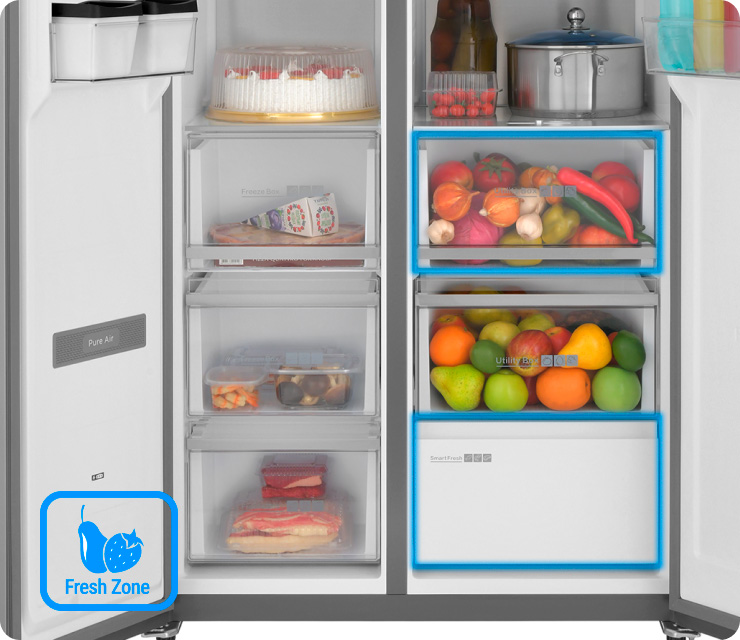 Зона свежести (Fresh Zone) с регулировкой температуры от -3 до 4°С для хранения различных продуктов