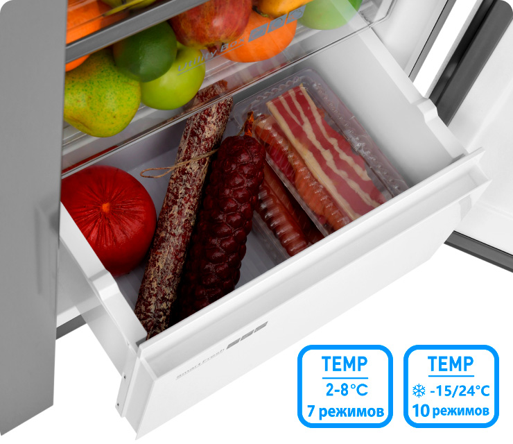 Зона свежести Smart Fresh с регулировкой температуры от -3 до 4°С (нижний ящик)