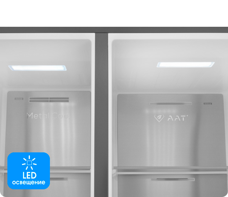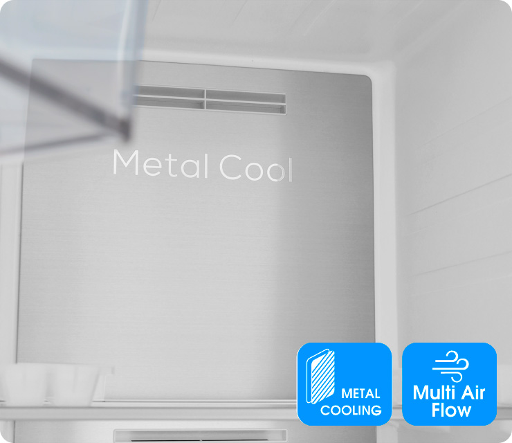 Металлическая задняя стенка (Metal Cool) способствует дополнительному охлаждению воздуха в холодильном отделении, не позволяет температуре повышаться при частом открывании дверцы