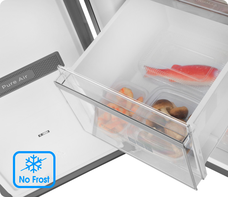 Система размораживания Full No Frost – это наиболее эффективная система охлаждения холодильной и морозильной камер, обеспечивающая принудительную циркуляцию холодного воздуха и предотвращающая образование наледи на стенках, благодаря чему происходит автоматическое размораживание холодильника.