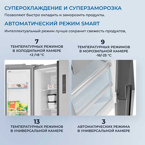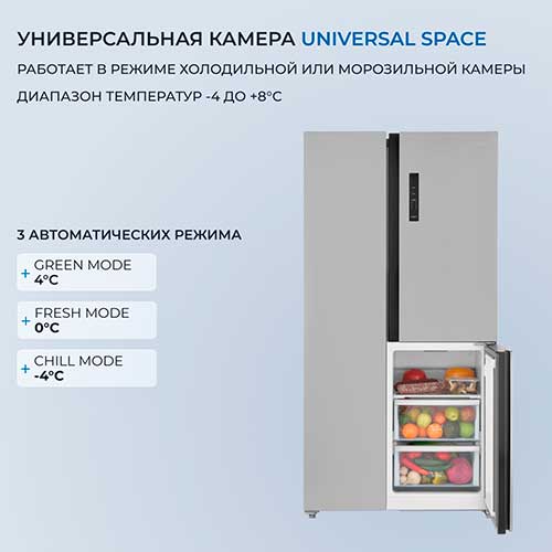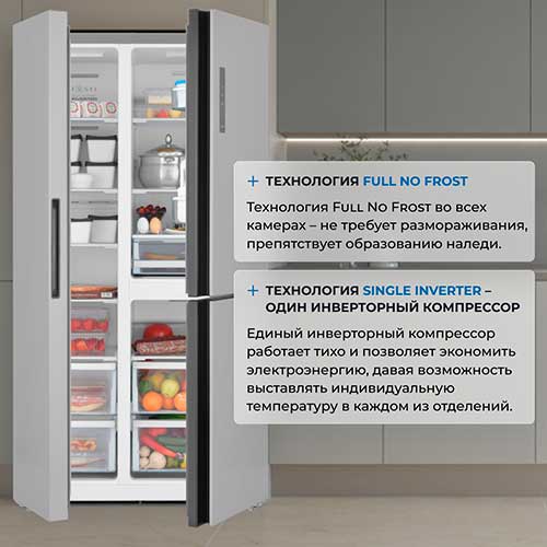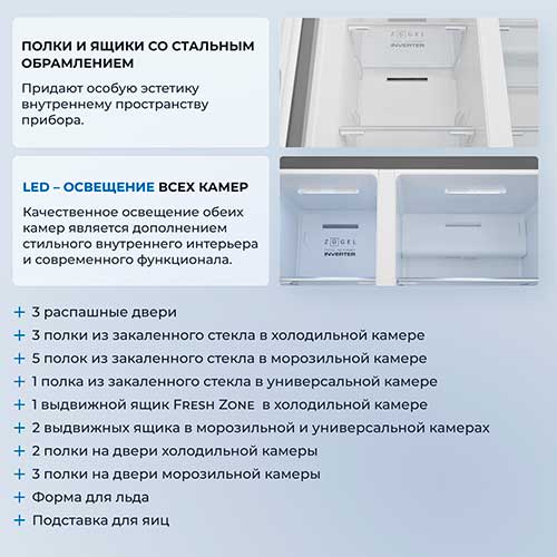 Холодильник Side-by-Side Zugel ZRTD459X нержавеющая сталь В наличии |