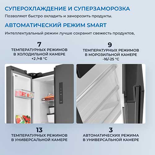 Холодильник Side-by-Side Zugel ZRTD459XB черная сталь В наличии |