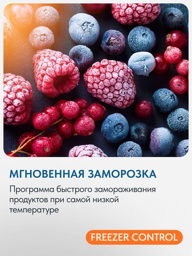 Специальный регулятор снижает температуру в морозильной камере. При перемещении в положение «включено» температура морозильной камеры снизится до - 21° С, в стандартном положении температура морозильной камеры будет - 18° С.