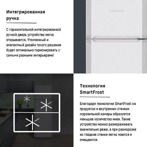 Благодаря использованию технологии SmartFrost на внутренних стенках и на замороженных продуктах образуется значительно меньше инея. Технология позволяет значительно реже размораживать холодильник. Гладкие внутренние стенки легко моются. Запененный испаритель в морозильной камере обеспечивает равномерное охлаждение и способствует сбережению электроэнергии.