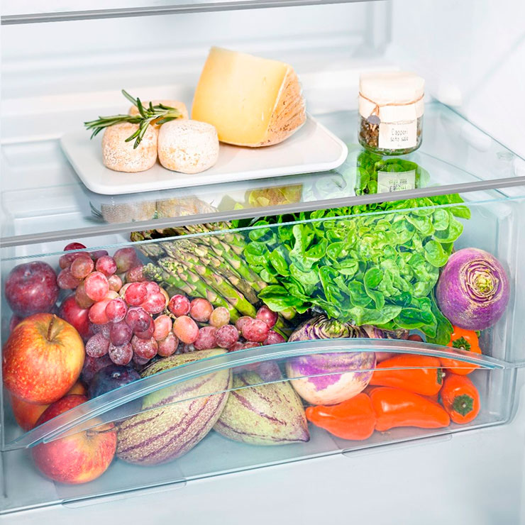 Прозрачные контейнеры для овощей и фруктов весьма вместительны и хорошо просматриваются. При этом они легко моются.