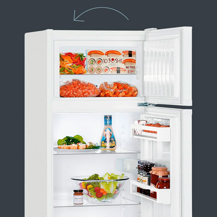 В стандартном исполнении на холодильники устанавливается дверь, которая открывается слева направо. При этом для более удобного открывания и адаптации к условиям в помещении дверь можно перенавесить и тем самым изменить сторону ее открывания.