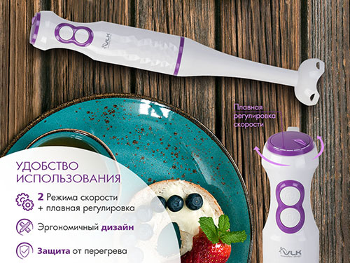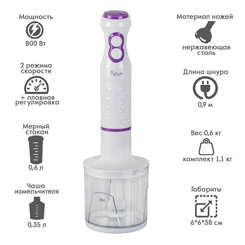 Погружной блендер VLK PROFI 104, белый/сиреневый В наличии |