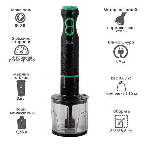 Погружной блендер VLK PROFI 105, черный/зеленый, отзывы (0) | Добавить отзыв |