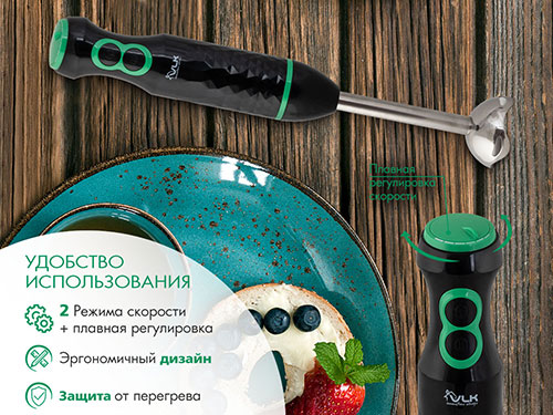 Погружной блендер VLK PROFI 105, черный/зеленый В наличии |