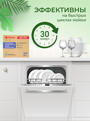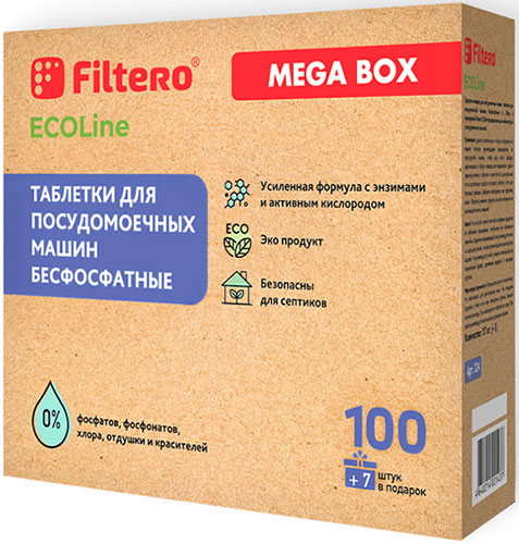 Таблетки для п/м/м Filtero ECOline, бесфосфатные, 100+7 шт. (Арт.724), отзывы (1) | Добавить отзыв | ||||||||