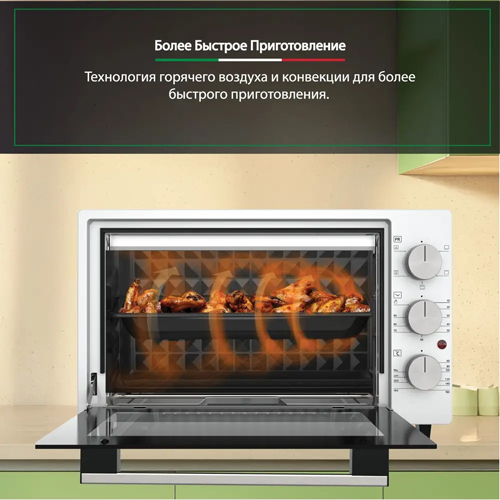 В комплект входит два противня и хромированная решетка, что позволяет готовить несколько блюд одновременно. Мини-печь станет незаменимым помощником в вашей кухне, позволяя экспериментировать с рецептами и готовить любимые блюда с легкостью. Она подходит как для запекания, так и для размораживания, поджаривания или подброски хлеба. Комфортное и простое управление делает процесс приготовления доступным и приятным даже для новичков.
