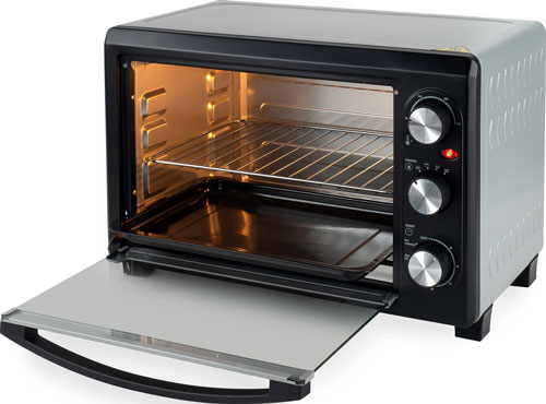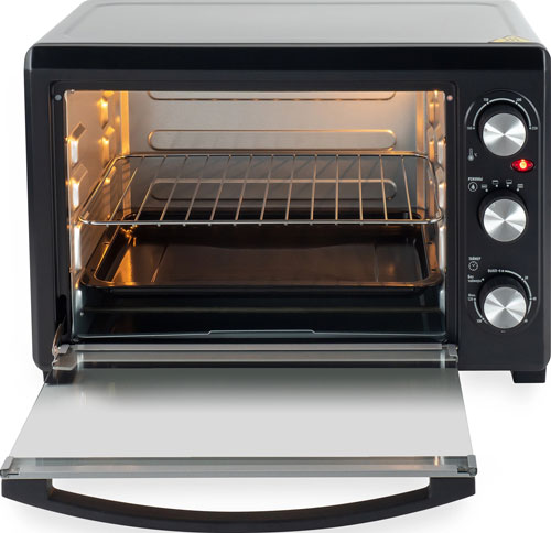 Внутренний объём мини-печи – 26 литров. Этого пространства хватит даже для блюд, рассчитанных на большую семью из нескольких человек. Следить за приготовлением пищи в реальном времени можно через стеклянную дверцу устройства. Стекло не только даёт полный обзор, но и отлично удерживает жар.