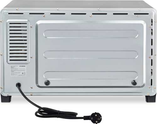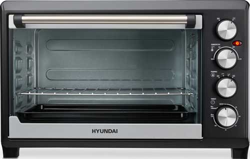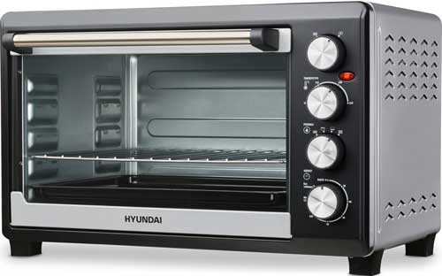 Мощность Hyundai MIO-HY075 составляет 2000 Ватт. Её достаточно, чтобы быстро нагревать печь до любого нужного температурного режима. Внутренний объём прибора – 38 литров. Он способен вместить даже большое блюдо. В комплекте с данной моделью поставляются решётка и универсальный эмалированный прямоугольный противень.
