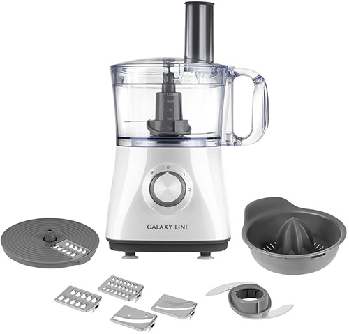 В комплекте насадки - для нарезки, шинкования, нож для измельчения и насадка-соковыжималка для цитрусовых – позволят приготовить разнообразные блюда по вашему рецепту.