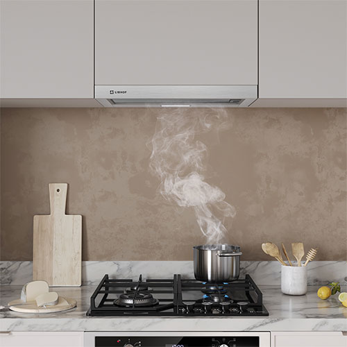 Механическое управление гарантирует простоту в использовании, а светодиодная подсветка освещает рабочую зону, создавая комфортные условия для готовки. Наличие антивозвратного клапана дополнительно улучшает циркуляцию воздуха. С двумя скоростями работы и выдвижным козырьком, эта кухонная телескопическая вытяжка подходит для любых потребностей.