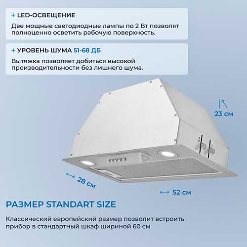 5,00 | | Преимущества: | Хорошая цена, достаточная производительность, равномерное освещение рабочей зоны, приличное качество изготовления, несложный монтаж | | Недостатки: | Не замечено. | | Комментарий: | Лучшая из недорогих моделей! Качественно сделана, мощная, удобная. Управление понятное – достаточно одного касания. Подсветка мягкая, не раздражает глаза. С запахами справляется эффективно, хотя на максимуме шум заметен. Фильтры чистятся легко. Рекомендую! |