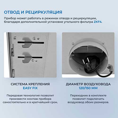 5,00 | | Преимущества: | Вытяжка быстро освежает воздух в большой кухне, а крепление Easy Fix действительно упрощает установку. Управление интуитивное, кнопки удобно расположены. Металлическая поверхность легко моется, что очень важно, если часто готовить. | | Недостатки: | Их нет! | | Комментарий: | Шум немного слышен только на максимальной мощности, но она работает так эффективно, что не включаю её надолго. |