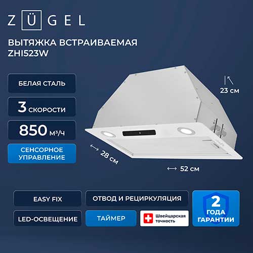 5,00 | | Преимущества: | Практичная, надежная и достаточно мощная. | | Недостатки: | нет | | Комментарий: | После того как старая вытяжка перестала справляться с запахами на кухне, решили обновить технику. Модель Zugel ZHI523W подошла идеально: компактная, выглядит современно и легко вписалась в интерьер. По сравнению со старой небо и земля конечно, прирост мощности сразу почувствовали. |