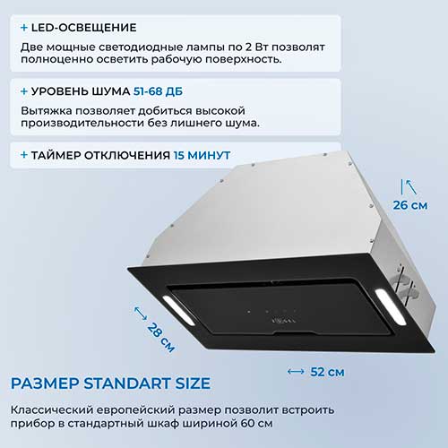 5,00 | | Преимущества: | Качественная светодиодная подсветка, стильный дизайн с черным покрытием, высокая производительность, встроенный таймер. | | Недостатки: | Отсутствуют | | Комментарий: | Современный внешний вид модели гармонично вписывается в интерьер, управление поначалу было непривычным, но потом освоились – срабатывает ничем не хуже стандартных кнопочек. Встроенный таймер добавляет удобства в эксплуатации. Светодиодная подсветка яркая, освещает всю зону. Мощности на нашу кухню даже много, поэтому чаще всего используем на среднем режиме. |