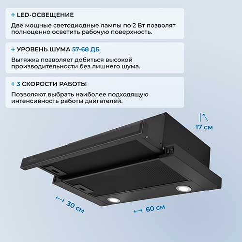 5,00 | | Преимущества: | Тонкая и компактная – мне нужна была именно такая из-за особенностей гарнитура. Работает тихо, переключатели кнопочные. Лампы яркие, светодиодные, для готовки и вечерней подсветки их вполне хватает. | | Недостатки: | Не очень удобно расположены кнопки, для доступа нужно выдвинуть переднюю панель. | | Комментарий: | Это модель без сенсорного управления, клавиши находятся за передней решеткой, то есть для включения скорости нужно ее сначала выдвинуть вперед. |