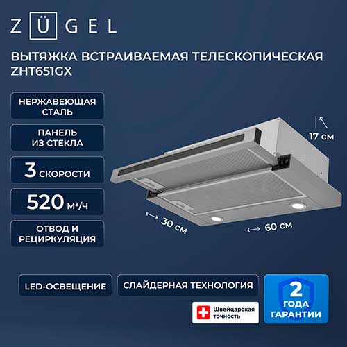 Вытяжка Zugel ZHT651GX стальная В наличии |