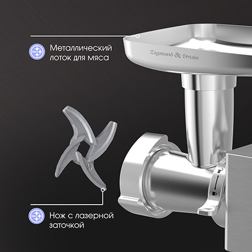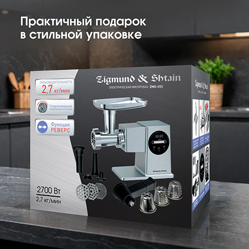Электрическая мясорубка ZMG-055 от компании Zigmund & Shtain с комплектом насадок-овощерезок – это функциональный кухонный прибор, призванный облегчить труд любой хозяйки.