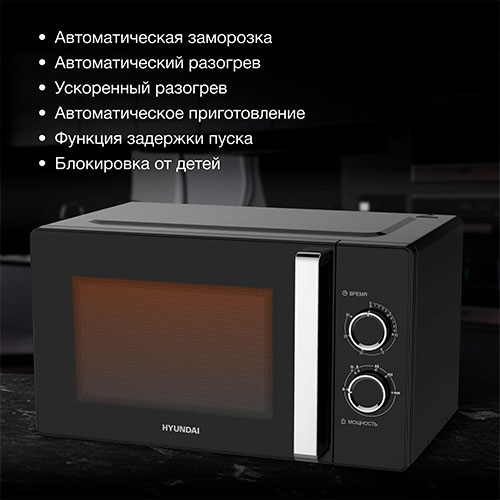 Микроволновая печь - СВЧ Hyundai HYM-M2012 (23л., 800Вт, черный/хром) В наличии |