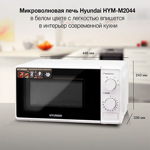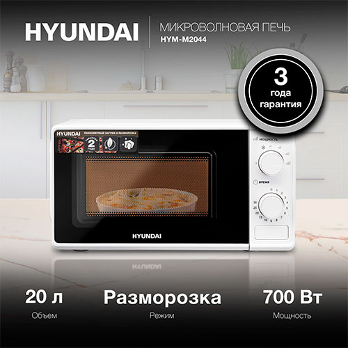 Микроволновая печь - СВЧ Hyundai HYM-M2044 20 л., 700 Вт, белый В наличии. Витринный образец |