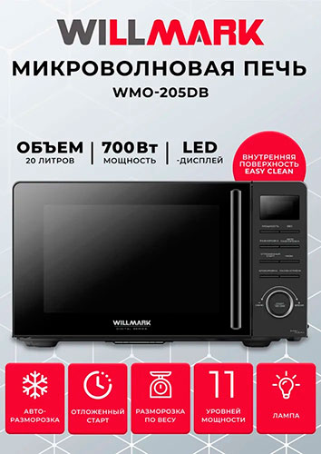 Микроволновая печь Willmark WMO-205DB, черная, отзывы (0) | Добавить отзыв |
