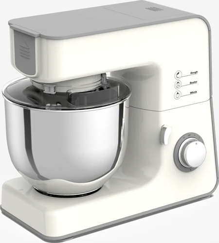 Планетарный миксер оснащен тремя насадками из алюминия и прозрачной крышкой от брызг для воплощения ваших кулинарных экспериментов.