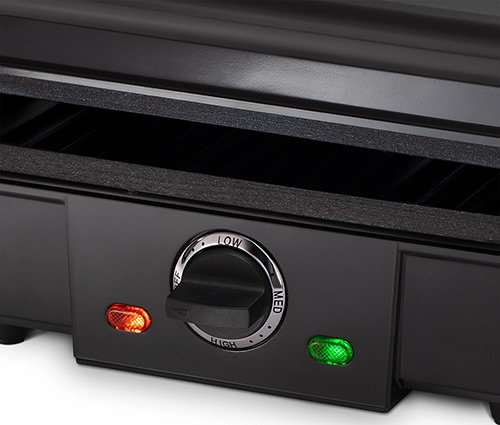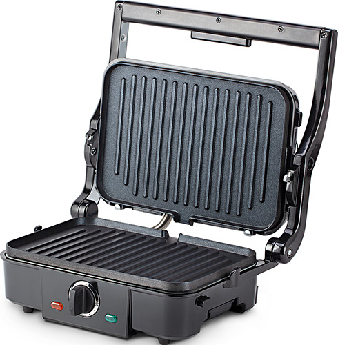 антипригарное покрытие, индикатор нагрева, регулировка температуры, съемные нагревательные поверxности, съемный лоток для сбора и удаления жира