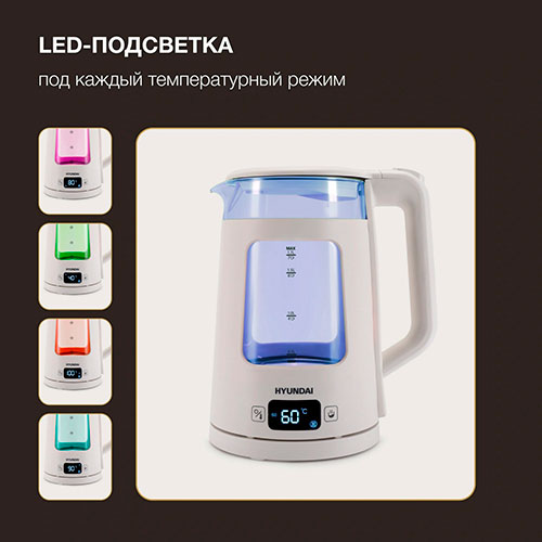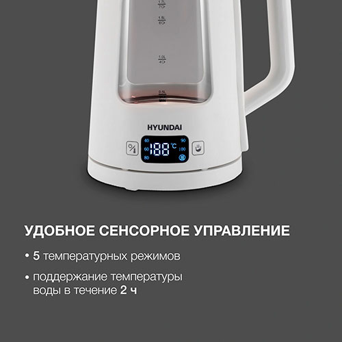 Чайник электрический Hyundai HYK-G9407 (1.7л., 2200Вт, белое стекло), отзывы (0)