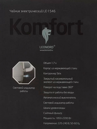 Чайник электрический Leonord LE-1546 1.7 л, белый, отзывы (0) | Добавить отзыв |