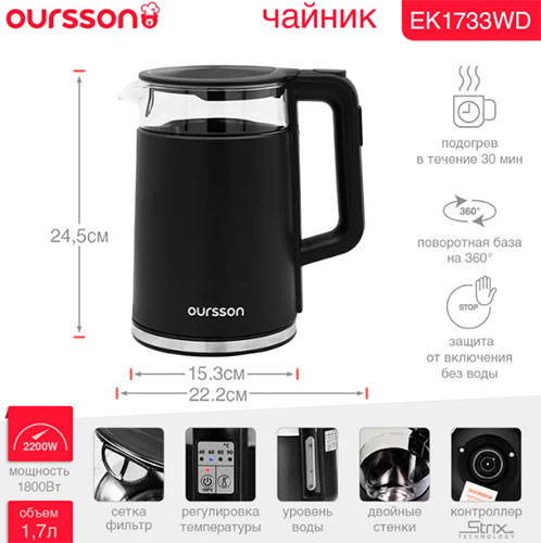 Чайник электрический Oursson KE1733WD/BL (Черный) В наличии |