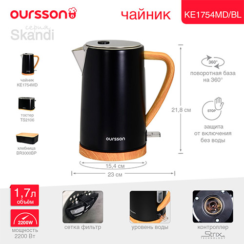 Чайник электрический Oursson KE1754MD/BL (черный) В наличии |