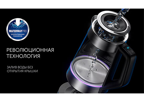 Новая запатентованная технология "WATERWAY PRO" для удобного залива воды в чайник без открытия крышки.