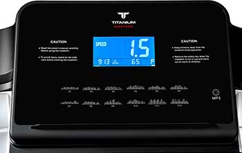 Тренировочный компьютер представлен голубым многофункциональным дисплеем диагональю 5 дюймов (12,7 см). На экран одновременно выводятся все основные параметры тренировки - время, скорость, дистанция, потраченные калории, угол наклона и пульс. В программный пакет входят 12 предустановленных программ, направленных на тренировку скоростных качеств, выносливости, укрепления сердечно-сосудистой системы и похудания. Помимо предустановленных программ, можно воспользоваться самостоятельно регулируемым ручным управлением или создать собственную программу в одном из 3-х пользовательских режимов. Здесь также есть 3 пульсозависимых режима. Для считывания показаний пульса в поручни дорожки вмонтированы контактные сенсорные датчики. Благодаря "быстрым клавишам" управления можно отрегулировать скорость либо угол наклона, не снимая рук с поручней. Разнообразить тренировку поможет мультимедийная составляющая - в консоль дорожки установлены колонки мощностью 3 ватта, а носителями аудио файлов выступают MP3-плеер или смартфон. К другим особенностям дорожки относятся двухфазная гидравлическая система складывания easy-DROP , которая существенно облегчает складывание дорожки, а при раскладывании обеспечивает медленное опускание полотна в последней фазе, гарантируя легкость и безопасность. Перемещение дорожки происходит за счет 2-х транспортировочных роликов.