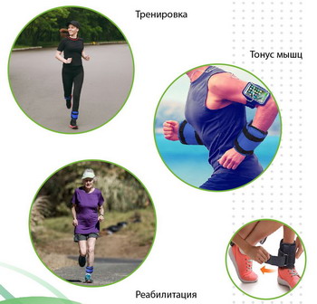 Утяжелители для рук и ног увеличивают нагрузку во время различных спортивных упражнений, гимнастики и бега. Такие тренировки позволяют быстрее разогреть мышцы, дают дополнительную силовую нагрузку, способствуют похудению и существенно повышают результаты. Утяжелители подходят для отработки ударов и махов, формируют рельеф мышц и увеличивают выносливость.