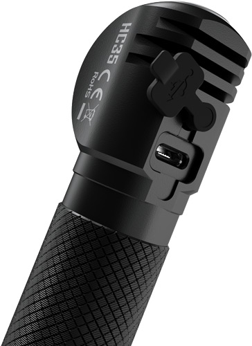 Nitecore HC35 является полностью герметичным, может использоваться даже под водой и способен выдерживать падение с высоты до 1,5 метров.