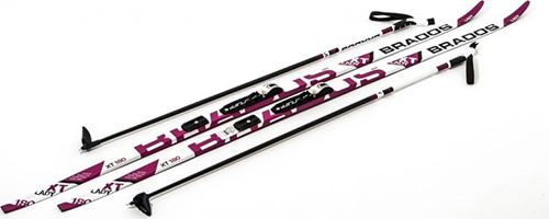 В состав комплекта входят пластиковые лыжи с насечками на скользящей поверхности, крепления системы NNN, которые уже установлены на лыжи и лыжные палки из стекловолокна.