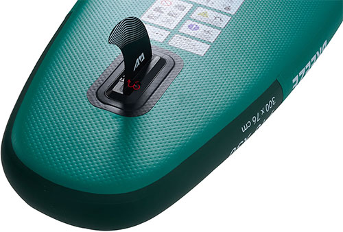 По периметру SUP-доски расположен защитный бампер из прочного армированного ПВХ с плотностью 1000 Den, который защищает камеру борда от ударов. Надежный клапан высокого давления с широкой резиновой крышкой гарантирует отличную герметичность и предотвращает утечку воздуха в процессе эксплуатации.