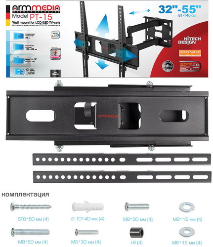 Кронштейн для телевизора Arm media PT-15 black, отзывы (0) | Добавить отзыв |